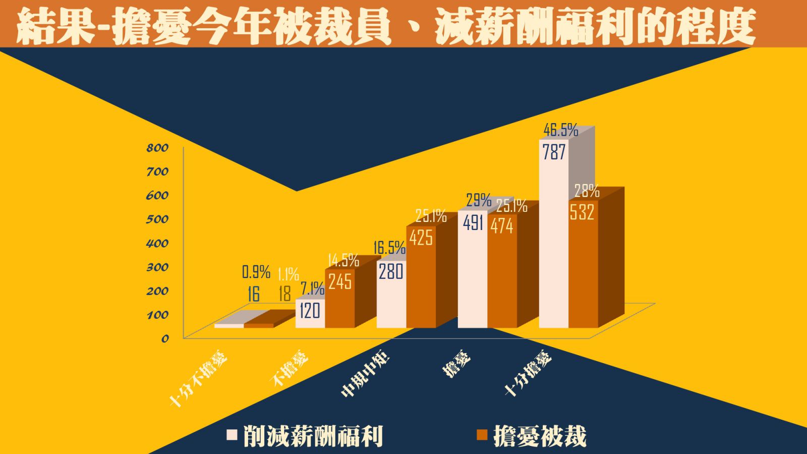 面對本澳旅遊博彩業因疫情受到衝擊,逾半受訪者擔憂自己被裁員。有53.1%受訪者反映擔憂或十分擔憂自己今年內被裁員,僅有15.6%表示不擔憂或十分不擔憂;更有75.5%受訪者擔憂或十分擔憂自己今年內被削減薪酬福利,僅有8%表示不擔憂或十分不擔憂。面對疫情,博彩從業員還有苦中一點甜,90%受訪者表示在過去一週多了陪伴家人,共享天倫之樂。