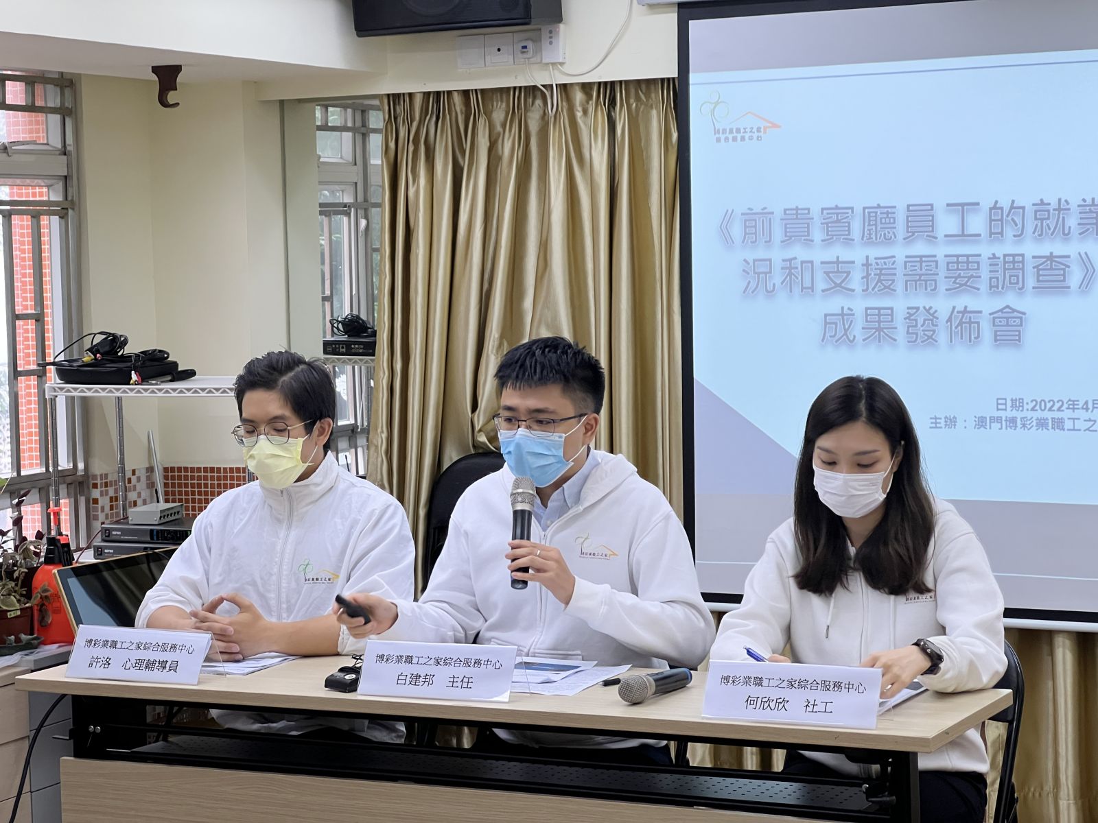 博彩業職工之家綜合服務中心於2月22日召開2022年度服務總結新聞發佈會,博彩業職工之家會長梁孫旭、總幹事盧耀華、中心主任白建邦、中心心理輔導員許洛介紹該中心的2022年的服務狀況及博彩業職工的近況。