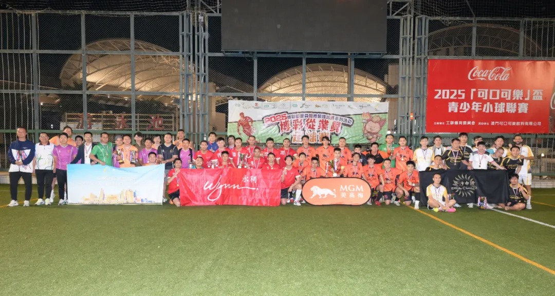 由澳門博彩業職工之家綜合服務中心、澳門工會聯合總會體育委員會合辦,澳門綜合旅遊休閒產業人員文娛康體協會、博彩從業員志願者協會協辦,澳娛綜合度假股份有限公司、美高梅、新濠博亞娛樂、金沙中國、永利以及銀河娛樂集團聯合贊助的「2025博彩從業員足球賽」日前假工人體育場順利完成。主辦單位期望為博彩業職工提供了展現球技及團隊合作精神的平台,宣揚享受健康體育運動的訊息。