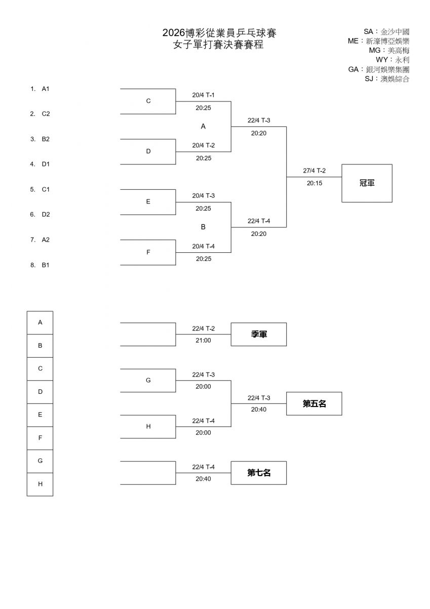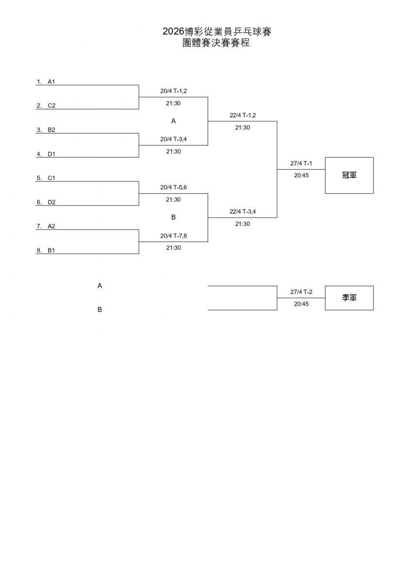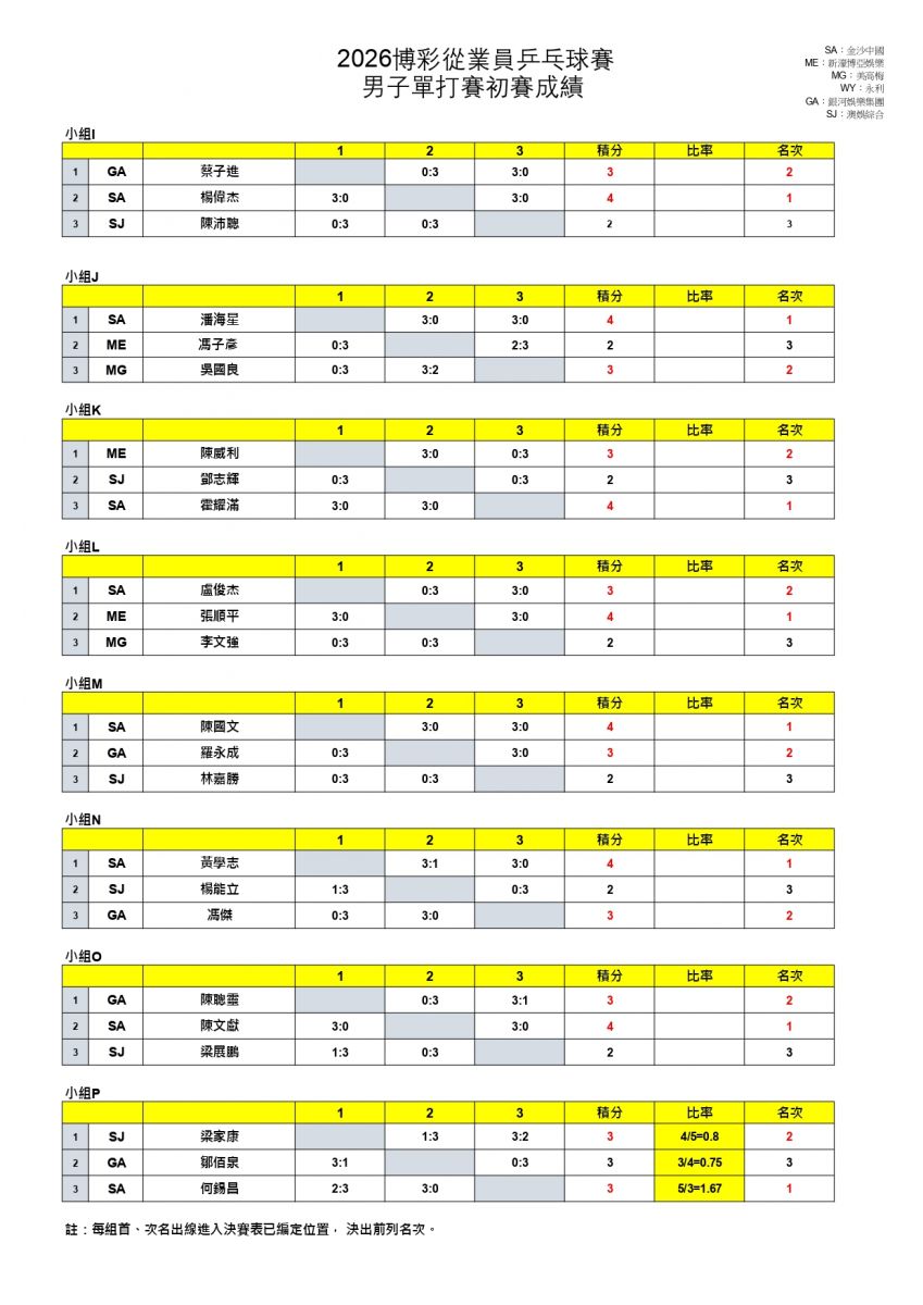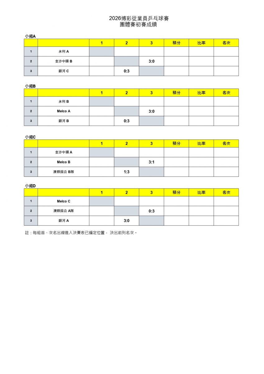 2026年度博彩從業員乒乓球賽賽程及賽果