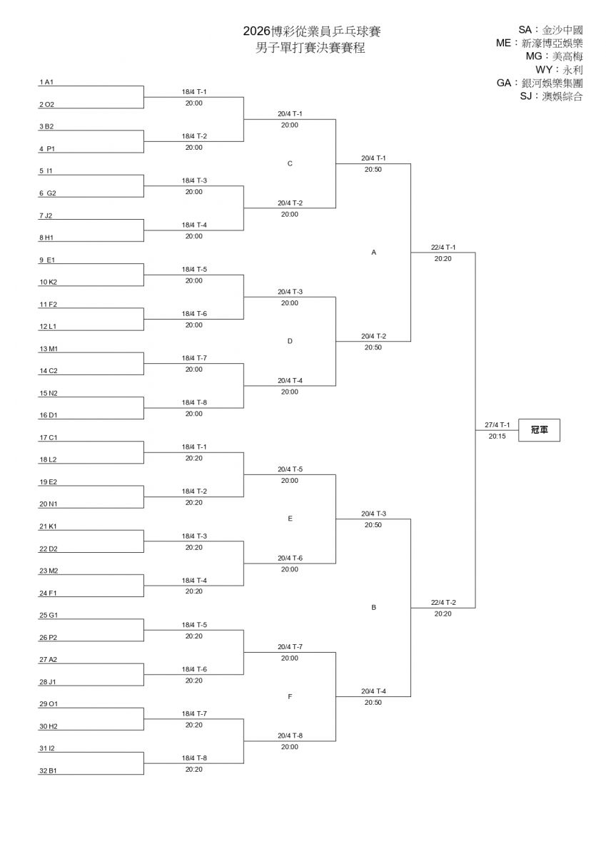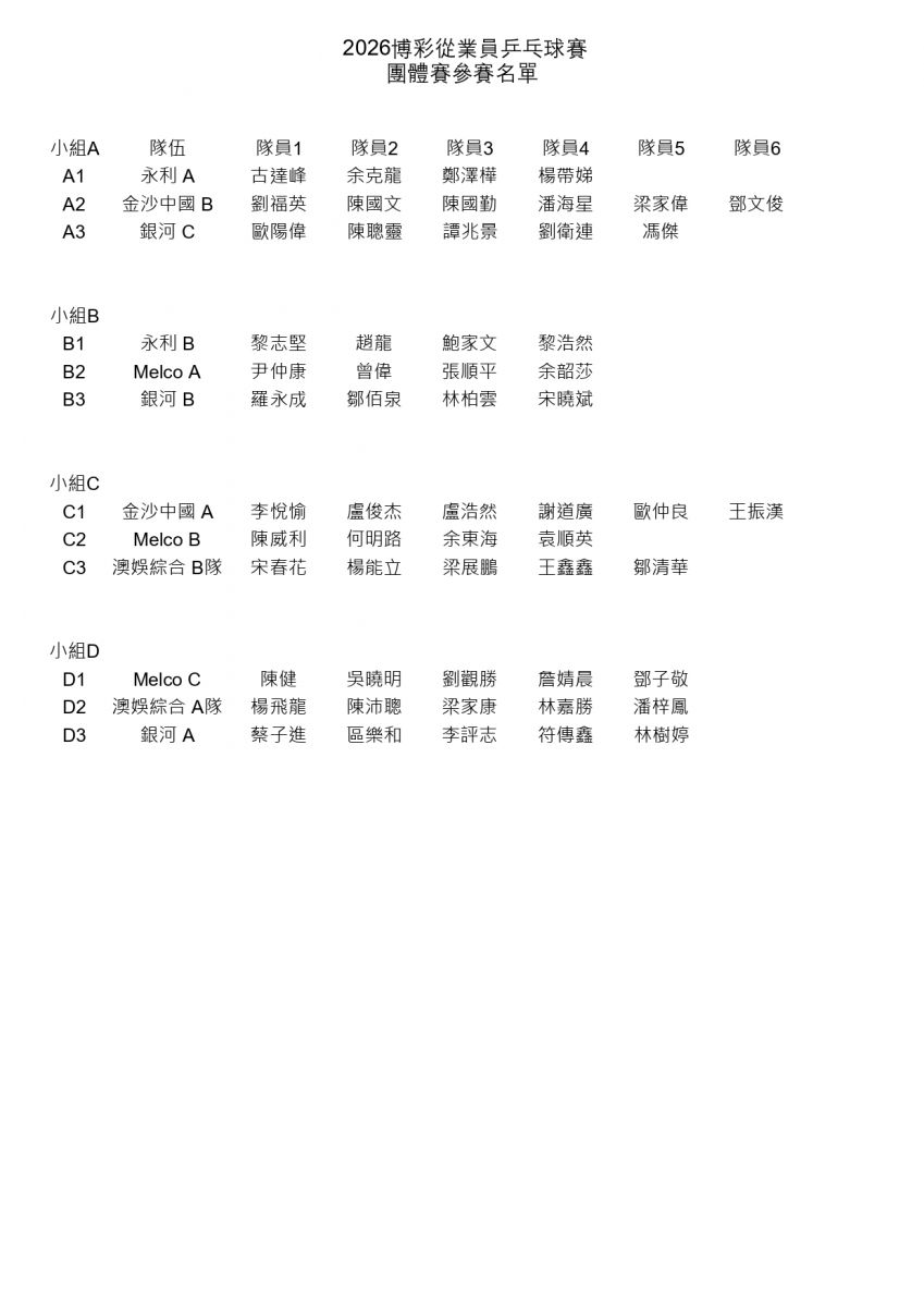 2026博彩從業員乒乓球賽賽程