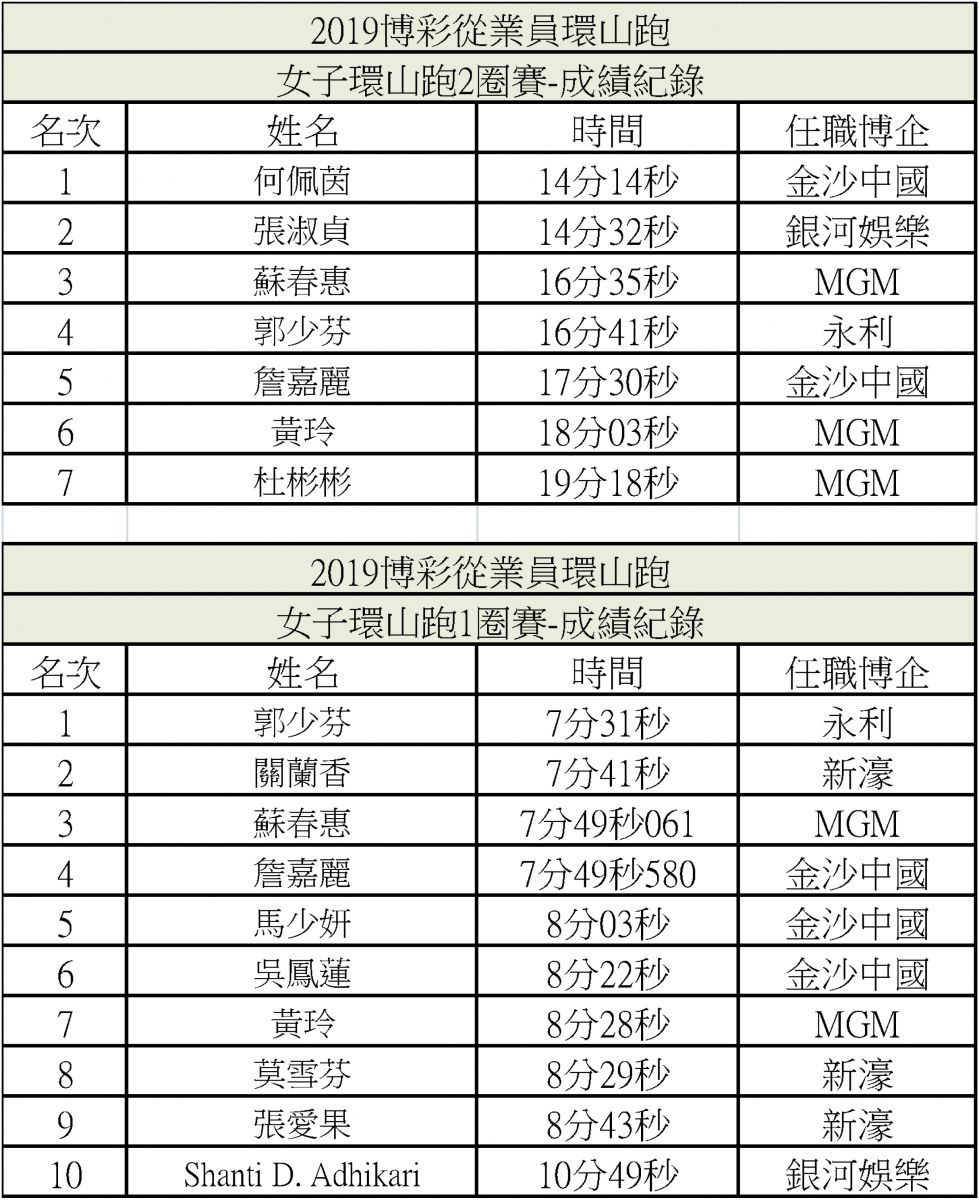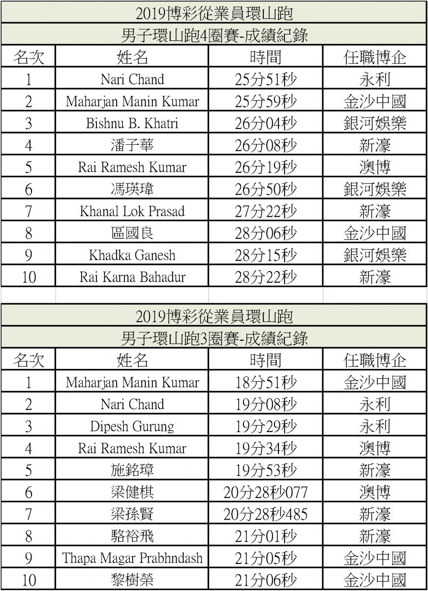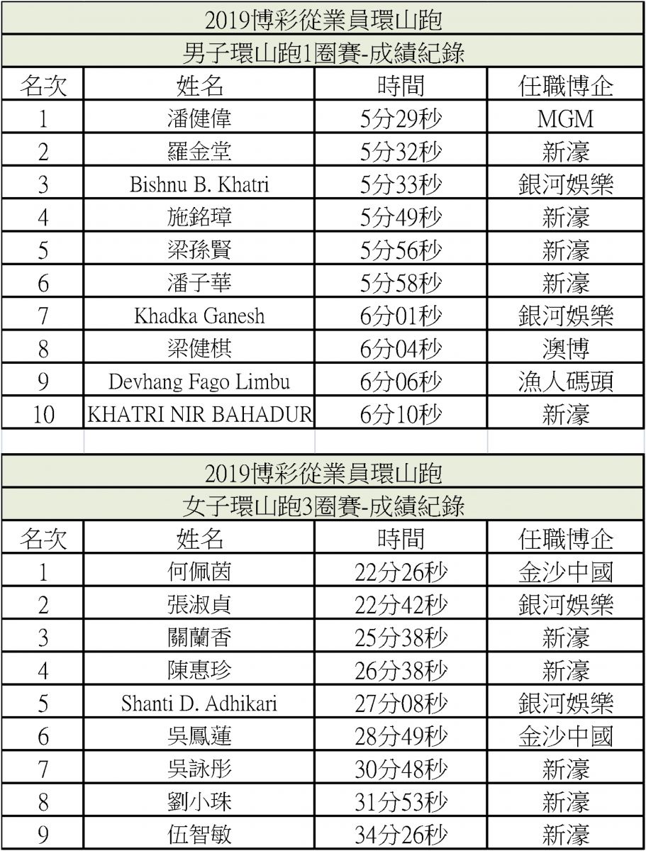 2019年博彩從業員環山跑得獎者名單及精選照片