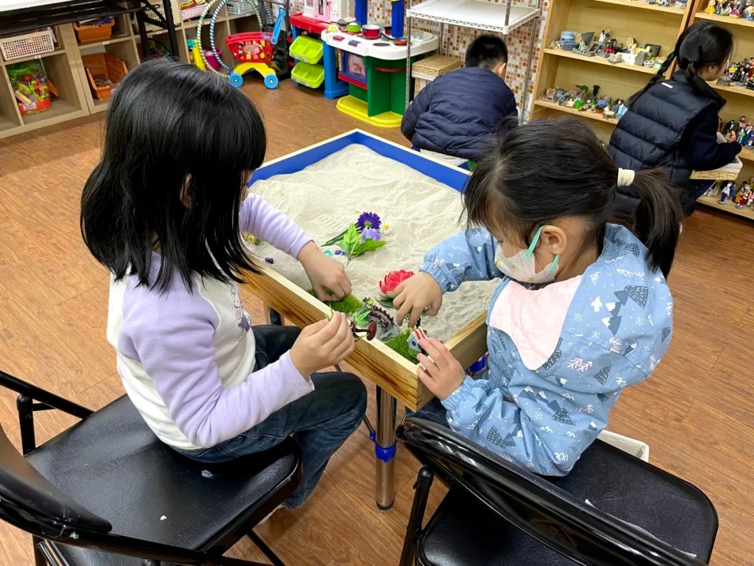 沙盤遊戲為小朋友創造一個自由和安全的空問,透過選擇沙具這具體呈現的方式把其心中的想法及情感呈現出來,讓小朋友能更好地把外在事件和情感經驗的連結,有助小朋友疏通自身情感。